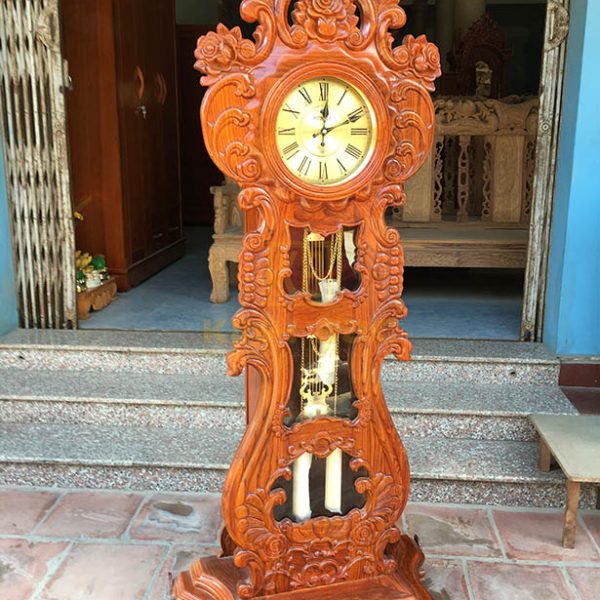 Đồng Hồ Tứ Trụ Gỗ Hương Lắp Phụ Kiện Nhôm Cao 2m3 ( gỗ hương đá )