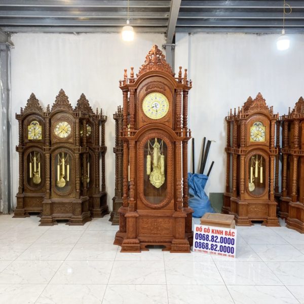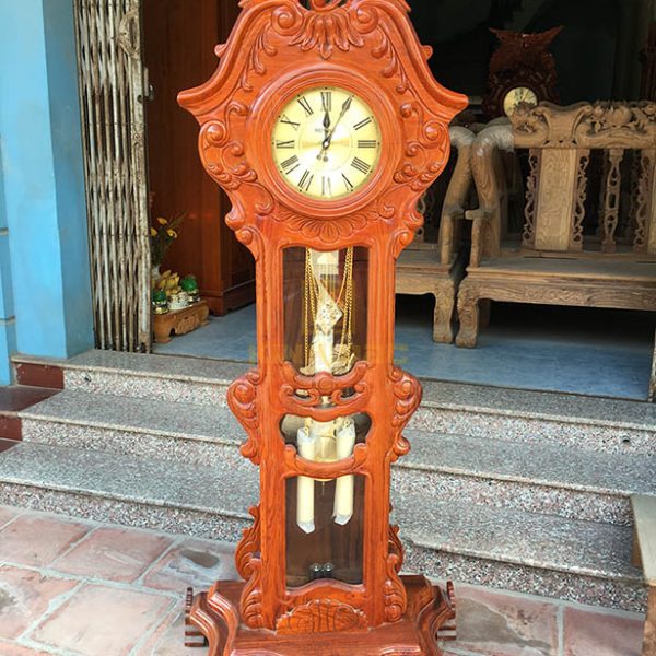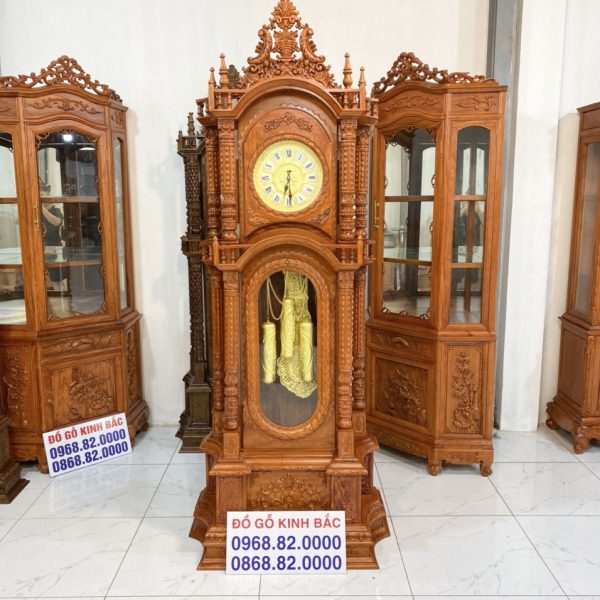 Đồng Hồ Tứ Trụ Gỗ Hương Lắp Phụ Kiện Đồng Vàng Cao 2m3