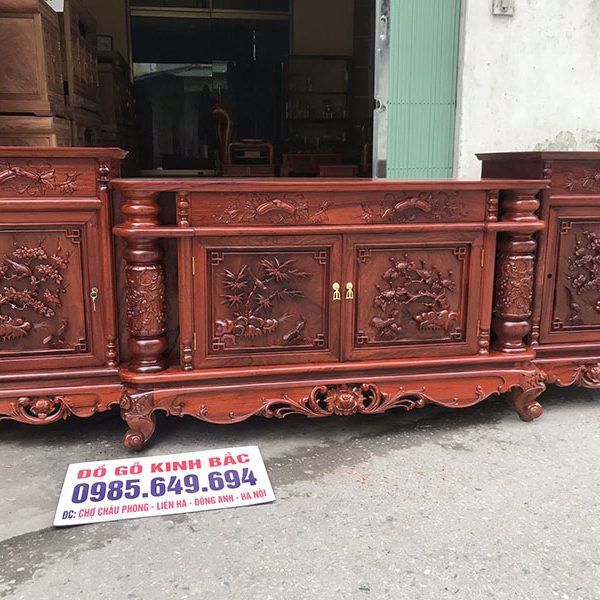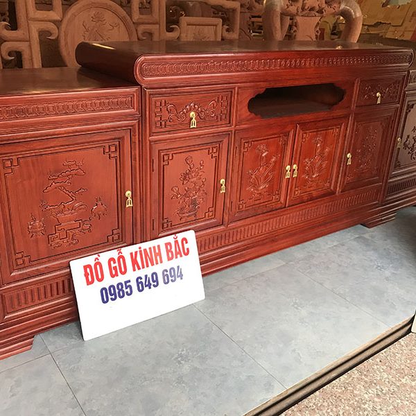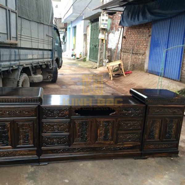 Kệ tivi kiểu mõ gỗ Hương Đá dài 2m4 Ván dày 1 phân 2