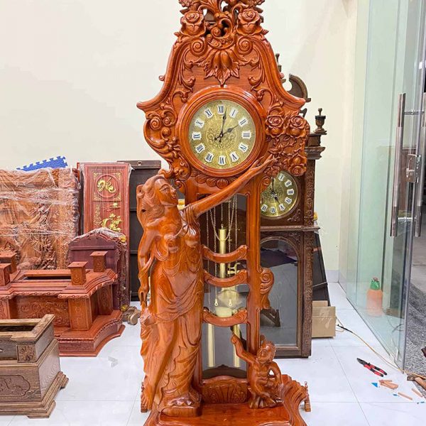 Cây Đồng Hồ Cô Tiên Gỗ Mun Hoa Lào Xịn Cao 2m3