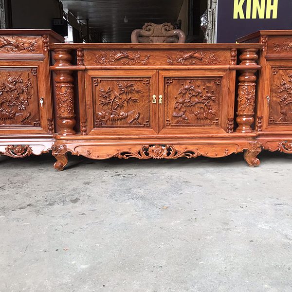 Kệ tivi louis hoa hồng 2m4 ( gỗ hương đá ) đục tay 100%