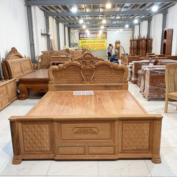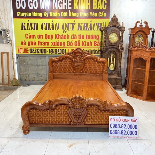 Giường Luis hoa hồng chim trĩ 2mx2m2 siêu Vip ( gỗ gõ đỏ )
