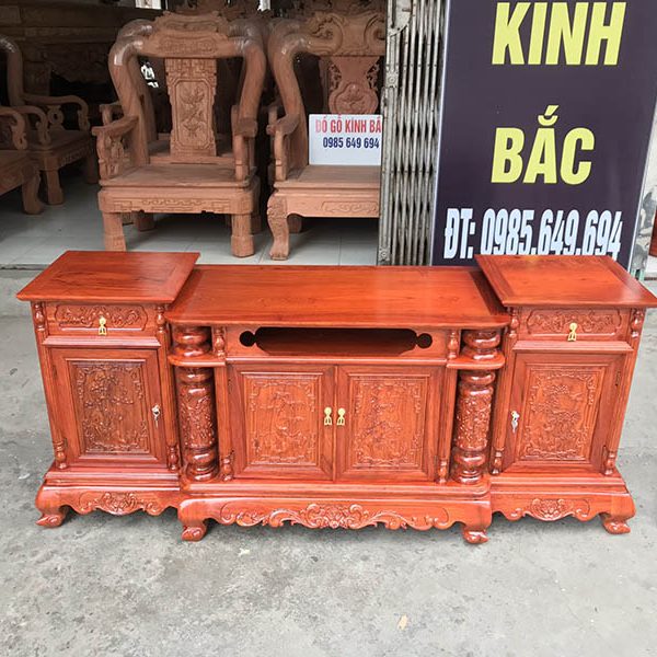 Kệ tivi kiểu mõ gỗ Hương Đá dài 2m4 Ván dày 1 phân 2