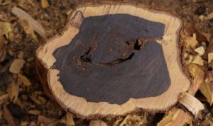 Mặt cắt của thân gỗ trắc.