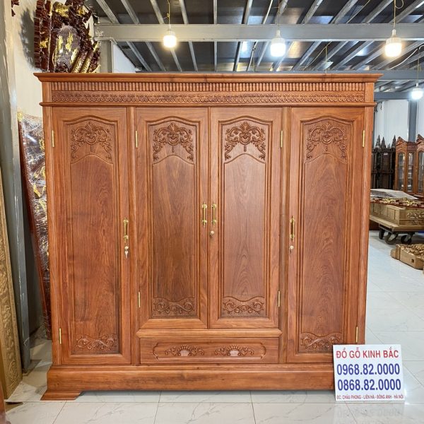 Xem chi tiết: Tủ Áo 3 buồng 4 cánh mẫu bệ chân quỳ cánh đục hoa lá tây (gỗ hương đá)